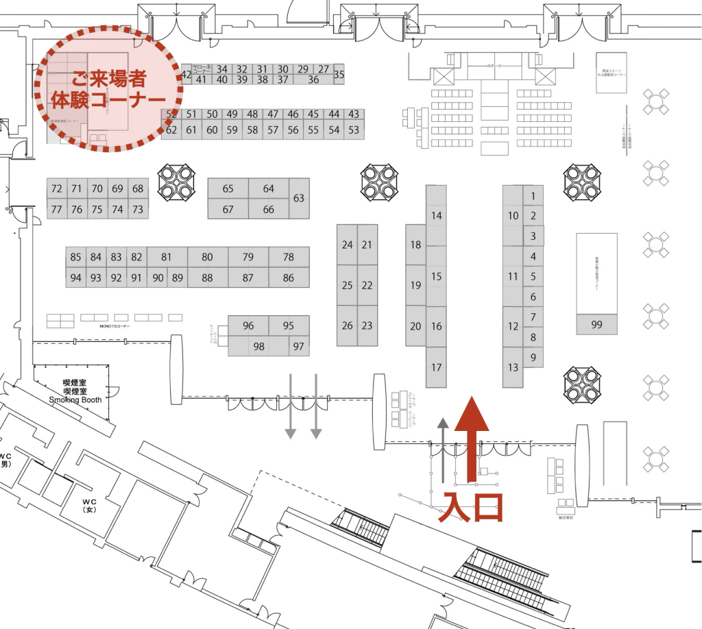 会場入口より正面のステージに向かって左側に「ご来場者体験コーナー」がございます。
